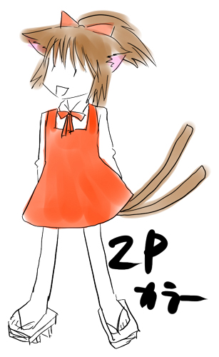 ● 2Pカラー:茶髪ポニテ、猫ム○メのあの服。足元は下駄