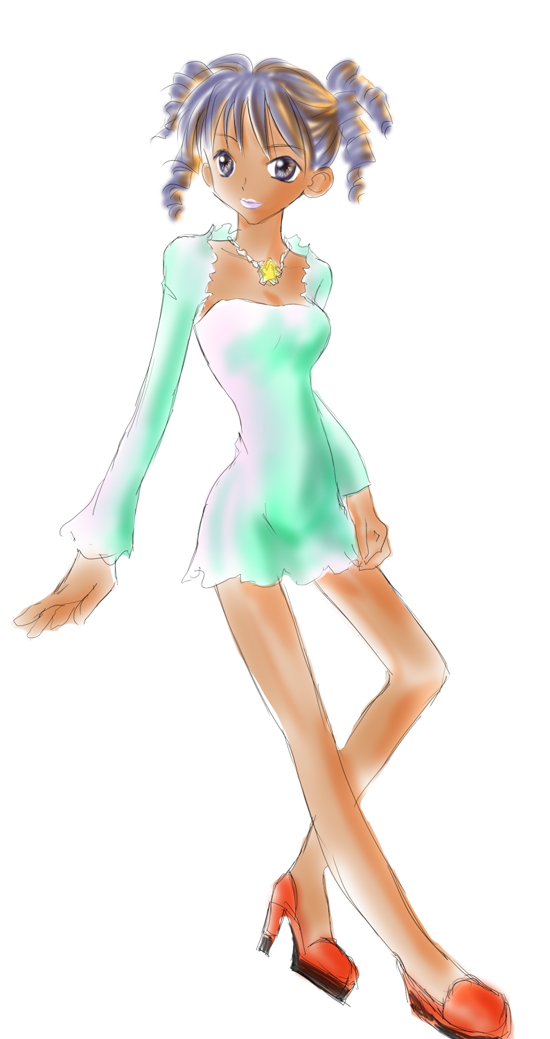 褐色の肌にときたら、やっぱちょっと白系の服を着せたいわけですよ、というわけでイメージは、真珠貝から無理やり色を抜き出した超ミニワンピ