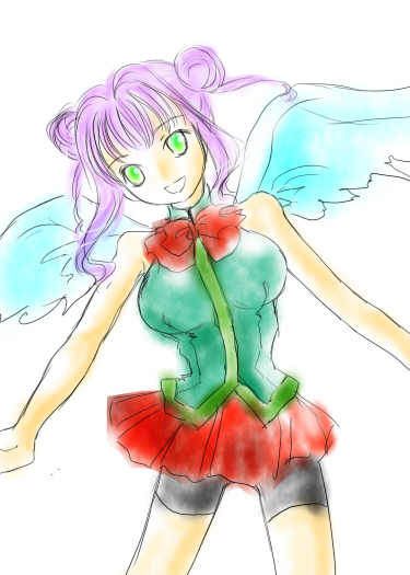 スパッツといつも背中の羽に邪魔にならないようなお洋服を着ているのょ
