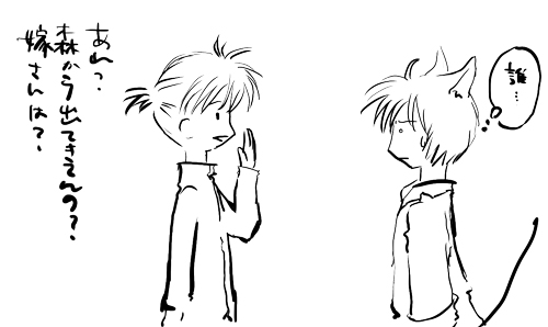 「それにしても何年ぶりだよ。化け猫並みだな、何年たってもかわんねー。しかもスカートとか。なっつかしぃねぇ、子猫ちゃーん?」
